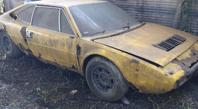 Única Ferrari Dino 208 GT4 registrada no Brasil está abandonada e vai a leilão a partir de R$ 1 mil