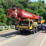 Neste trecho acontece a remoção do caminhão que despencou de uma ponte na localidade de Santa Clara Baixa na noite de terça-feira. O motorista (uruguaio), segundo ele, teve um mal súbito.