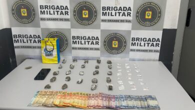 Na madrugada desta quinta-feira, 25 de outubro, durante a Operação Dissolutio, uma guarnição da PATRES – Patrulhas Especiais, durante ações na Rua Rua Rosecrel Pereira Ramos, bairro Progresso em Bento Gonçalves, abordou em via pública o indivíduo de inicias C. F. d. C. e em revista pessoal foi encontrado em seu bolso 36 pedras de crack, R$ 233 reais e um celular marca Samsung.