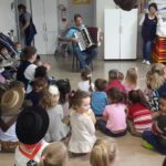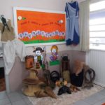 Os alunos receberam o Gaiteiro na Escola, quando o pai da aluna Amanda, do Berçário 1A, Ricardo Evangelista, animou as turmas tocando gaita e cantando músicas tradicionalistas. Houve ainda a mateada, o bailinho infantil e a degustação de deliciosos espetinhos, para lembrar a tradição gaúcha do churrasco. Seguindo na culinária tradicionalista, foi feito o “pinhão sapecado na grimpa”. As crianças puderam acompanhar o preparo e em seguida, fazer a degustação.