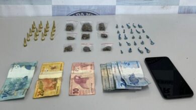 Junto ao indivíduo foram encontradas duas caixas de bombons no valor de R$ 70. O acusado foi encaminhado para a Central de Polícia onde foi feito o flagrante por roubo.