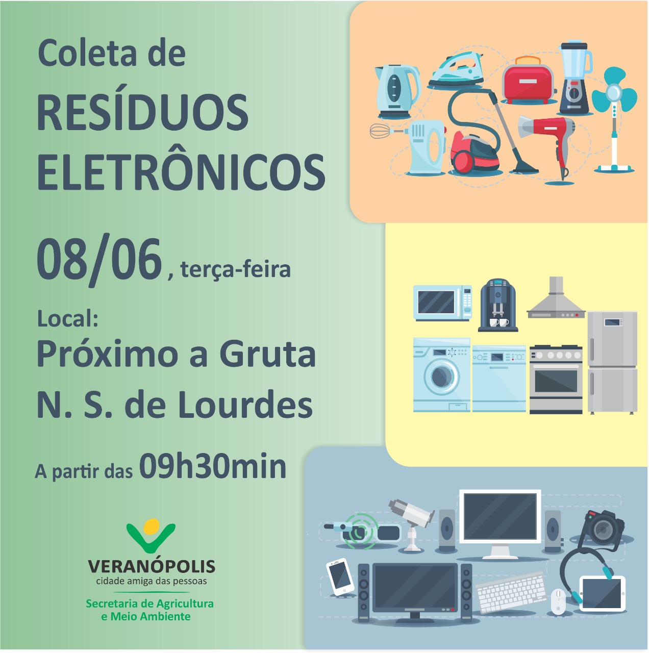 Neste dia, as pessoas que possuem equipamentos elétricos ou eletrônicos, estragados ou obsoletos, podem realizar o descarte correto dos mesmos. Haverá um caminhão na Rua São Francisco de Assis – Praça da Gruta, a partir das 9h30min, para recolher aparelhos de informática, telefonia, eletrodomésticos, entre outros.