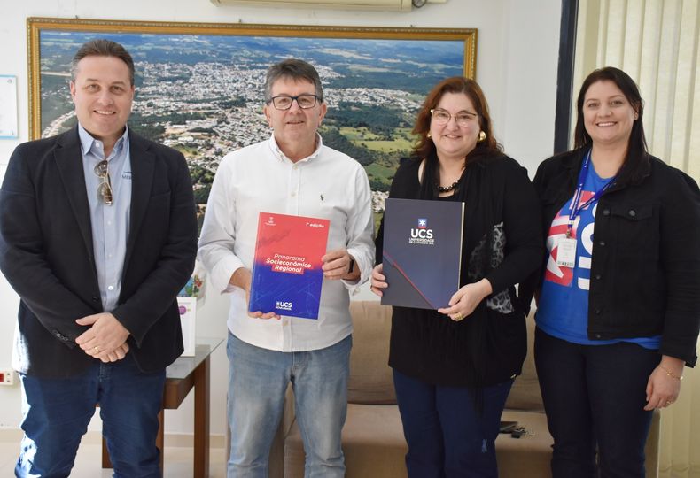 Na manhã desta quinta-feira, dia 18 de maio, o Prefeito de Veranópolis, Waldemar De Carli, recebeu em seu gabinete integrantes da UCS – Universidade de Caxias do Sul, os quais apresentaram parceria para realizar a 2ª edição da Revista Panorama Socioeconômico Regional.