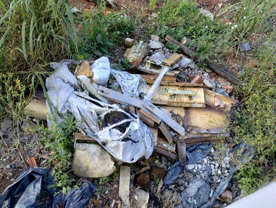 Restos de caixão haviam sido jogados em vegetação ao lado do espaço