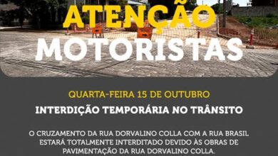 Interdição no cruzamento da Rua Dorvalino Colla com a Rua Brasil altera trânsito em Nova Prata