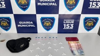 Em buscas mais detalhadas no local, os policiais encontraram mais 11 porções de cocaína (13,4g), quatro balanças de precisão, materiais para recarga de cartuchos e outros itens utilizados para preparar e embalar as drogas.
