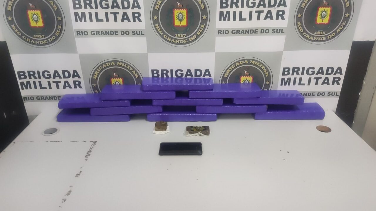 A prisão ocorreu durante patrulhamento de rotina, quando os policiais militares abordaram um veículo suspeito. O motorista, que foi identificado no local, não possuía Carteira Nacional de Habilitação (CNH). Durante a revista no interior do veículo, foram encontrados 11 tijolos de maconha, totalizando mais de 9 kg da droga.