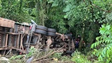 Segundo informações preliminares, ambos os veículos saíram da pista após o impacto, deixando o semirreboque da carreta parcialmente sobre a estrada. O automóvel, de cor branca, ficou com a parte frontal destruída, indicando a gravidade da colisão.