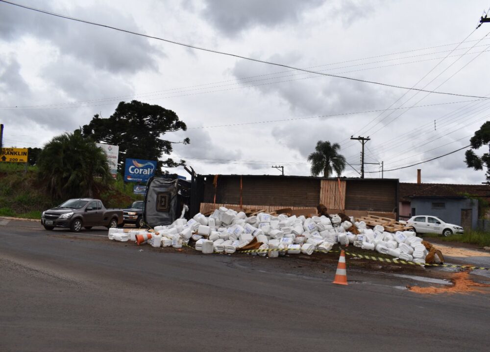 O acidente ocorreu quando uma parte da carga de herbicidas transportada por uma carreta se espalhou pela rodovia, atingindo o solo. O veículo transportava 720 galões de 20 litros cada, carregados com o produto químico.