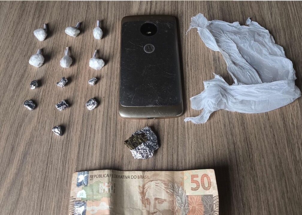 Durante a Operação Força Total, os agentes, em patrulhamento por uma área conhecida pela prática de tráfico, abordaram o suspeito e encontraram em sua posse: