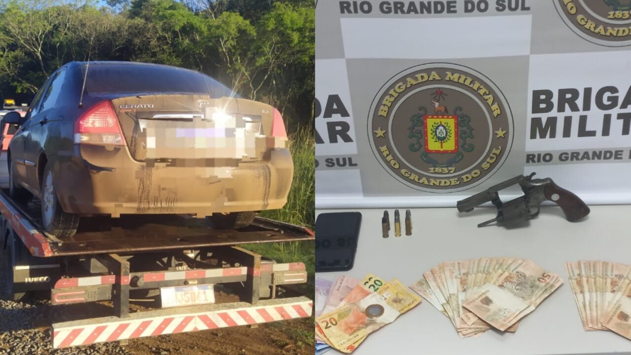 Após denúncia das vítimas, o veículo Kia Cerato do suspeito foi localizado circulando na região. De acordo com o relato das vítimas, o condutor seria o autor de uma tentativa de homicídio ocorrida horas antes no município de Camargo, estando armado com um revólver.