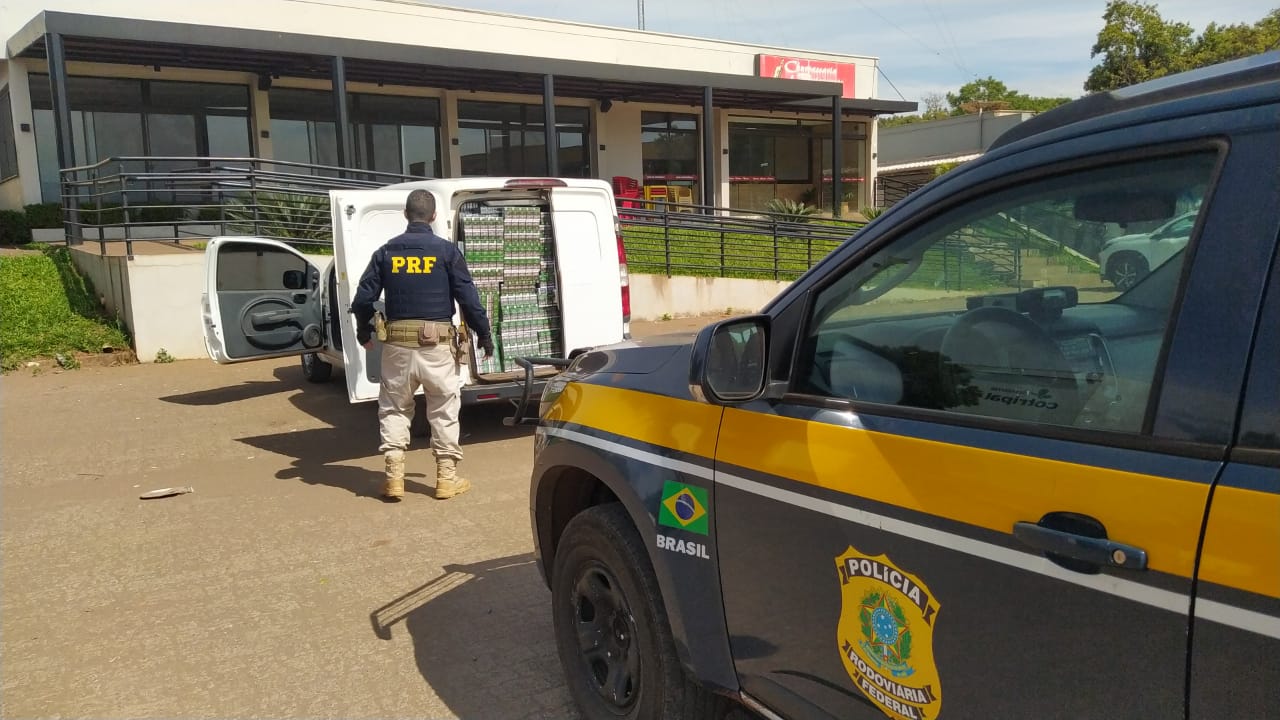 Durante uma ação de combate ao crime, os agentes da PRF deram ordem de parada ao motorista, que foi abordado e teve o veículo vistoriado. No interior da Fiorino, os policiais encontraram diversas caixas de cigarros contrabandeados, totalizando 26 mil maços.