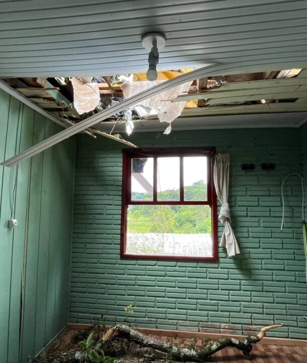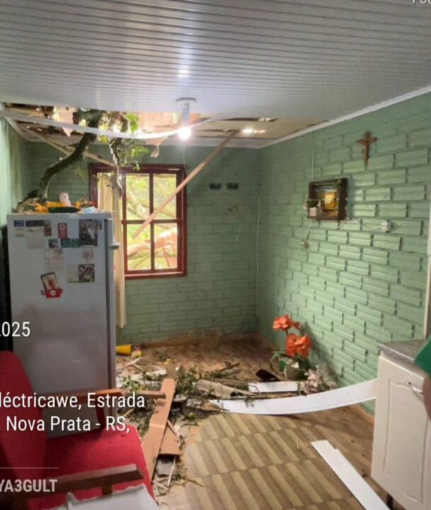 A Defesa Civil de Nova Prata foi acionada na manhã deste domingo, 26 de outubro, após uma árvore cair sobre uma residência no bairro Povoado Cola, no município. O chamado foi atendido pelo dirigente Daniel Vieira, que coordenou as ações no local.