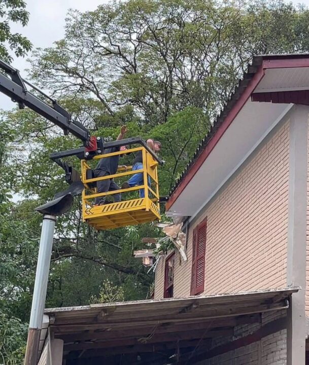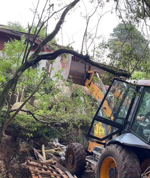 A equipe se deslocou rapidamente para realizar a avaliação da situação e acionou o Corpo de Bombeiros Voluntários e a Secretaria de Obras, que atuaram de forma ágil na remoção da árvore e na verificação de possíveis riscos estruturais.