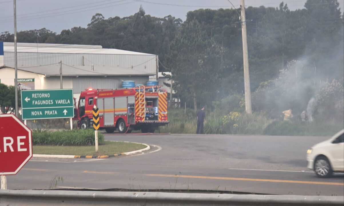 A rápida ação dos bombeiros evitou que o fogo se alastrasse, garantindo a segurança da área e dos condutores que passavam pelo trecho.