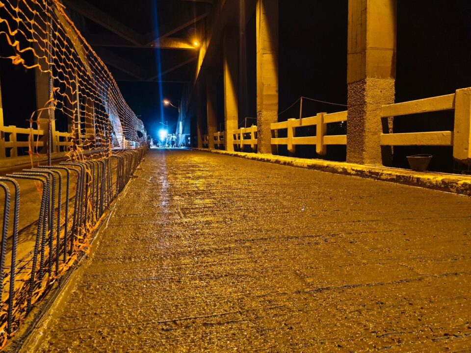 Além da concretagem da laje, o DNIT segue com os serviços de reforço estrutural nos pilares da ponte. Os guarda-corpos estão sendo modernizados e devem receber nova concretagem nos próximos dias, dando continuidade às obras de melhoria na estrutura da via.