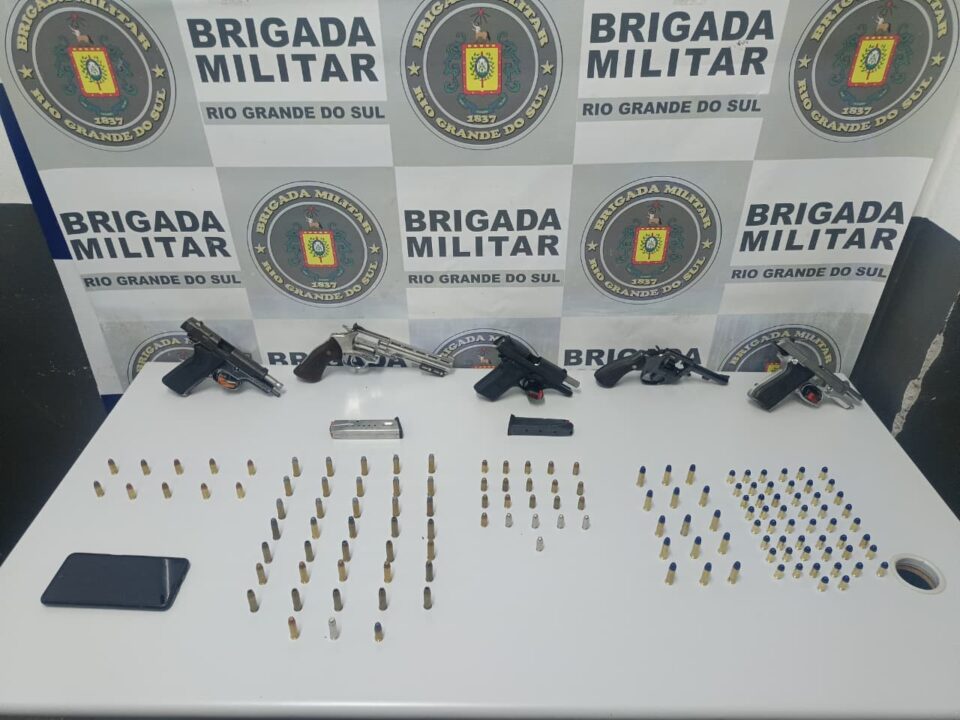 Durante a ação policial, foram apreendidas três pistolas e dois revólveres, além de 134 munições de diversos calibres, cinco carregadores e um celular. O suspeito foi conduzido à delegacia para os procedimentos legais.