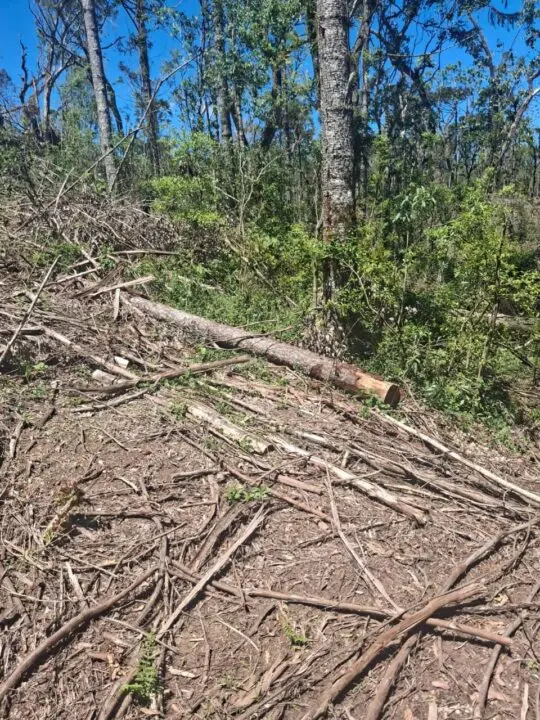 Conforme consulta ao Cadastro Ambiental Rural (CAR), a área atingida está inserida em Área de Reserva Legal, o que agrava a infração ambiental. A intervenção provocou a destruição de floresta ombrófila mista e do sub-bosque nativo, resultando em significativo dano à flora e à fauna locais. Estima-se que foram retirados cerca de 4.000 metros estéreos de madeira e toras de eucalipto.
