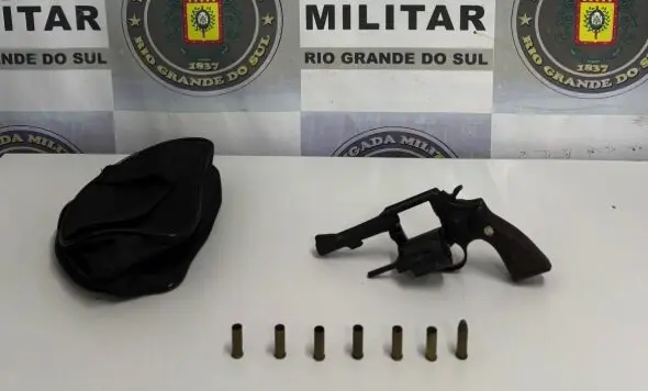 Em diligências posteriores, a Brigada Militar localizou um revólver calibre .32 da marca Rossi, com numeração suprimida. A arma estava municiada com seis cartuchos, sendo três já deflagrados. Também foram apreendidas três cápsulas deflagradas, cinco porções de maconha (totalizando 17,5g), uma balança de precisão, R$ 8.060 em espécie, uma câmera de videomonitoramento, três celulares e material para fracionamento e embalagem de entorpecentes.