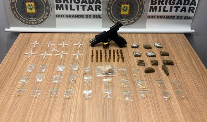 Na noite de segunda-feira, 6 de outubro, uma equipe da Brigada Militar, por meio do 3º Batalhão de Policiamento de Áreas Turísticas (BPAT), prendeu um homem de 37 anos e uma mulher de 53 anos por tráfico de entorpecentes e porte ilegal de arma de fogo no bairro Planalto, em Carlos Barbosa.