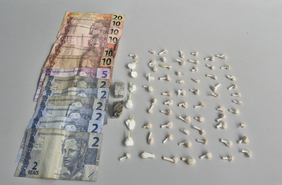 Durante a ação policial, foram apreendidas duas porções de maconha, seis porções de cocaína, 62 porções de crack e R$ 87,00 em dinheiro. O preso possui antecedentes criminais por tráfico de drogas, receptação e homicídio doloso.