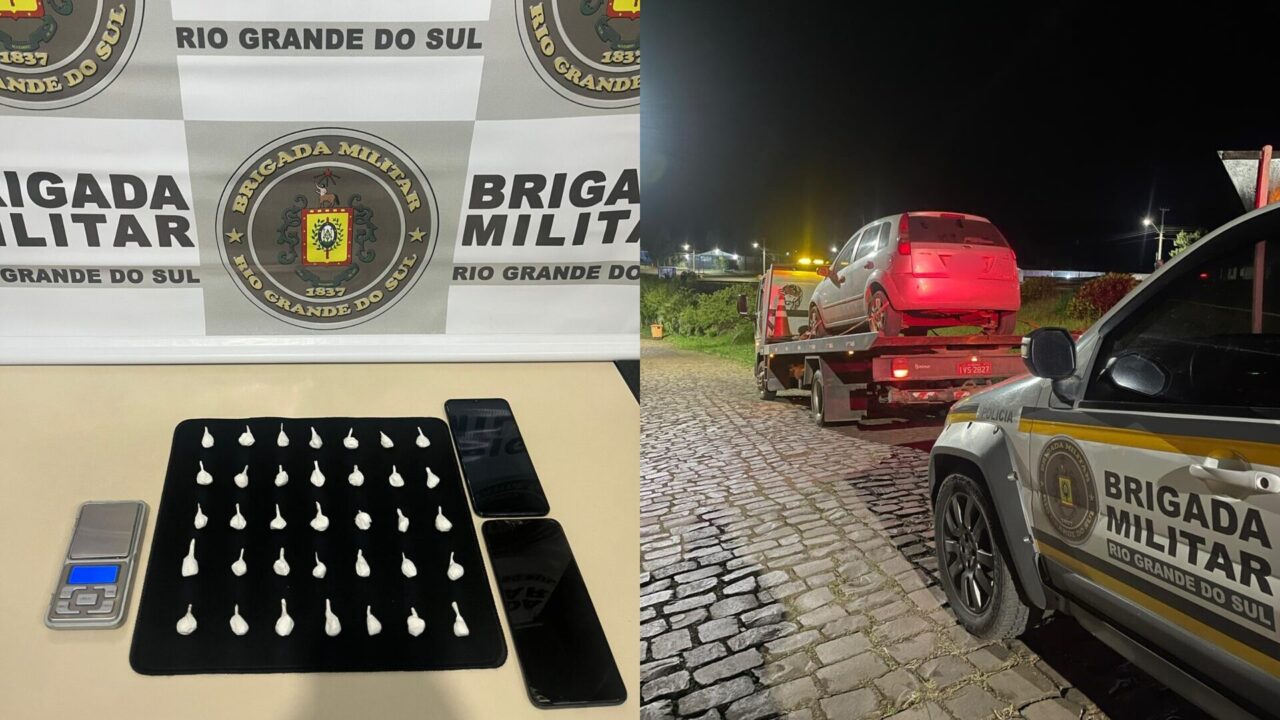 Brigada Militar intercepta veículo e encontra porções de cocaína prontas para venda durante patrulhamento na noite de sábado