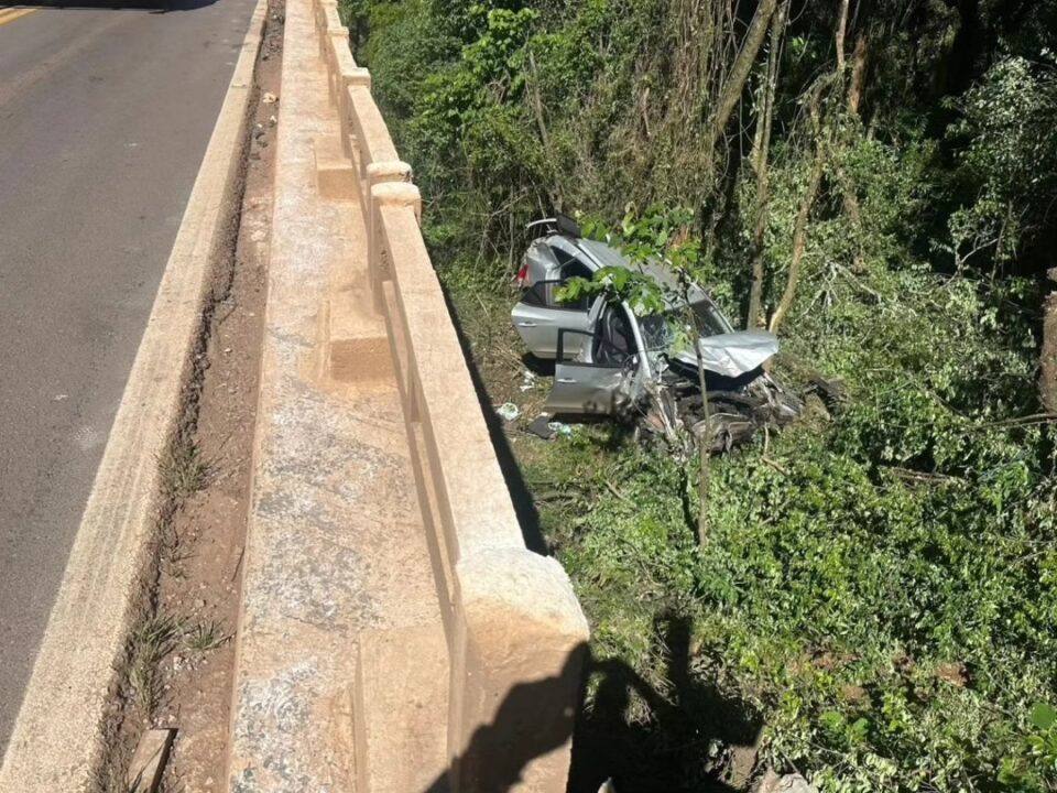 Carro despenca de barranco na BR-285 em Carazinho e motorista é resgatado