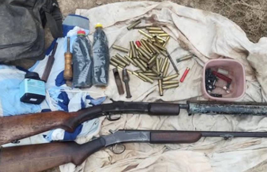 Durante as buscas, os policiais localizaram um barraco de lona, utilizado como esconderijo, e milho espalhado no solo, usado como isca para atrair animais. Próximo ao local, foi encontrado um cartucho calibre 36 deflagrado, o que levou a guarnição a intensificar as buscas até encontrar os dois caçadores.