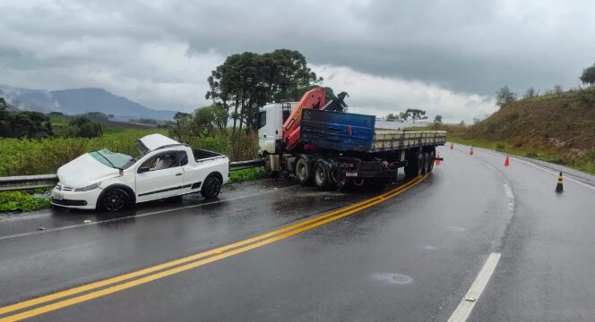 De acordo com a Polícia Militar Rodoviária (PMRv), as vítimas estavam em uma Volkswagen Saveiro com placas de Lages. O condutor, de 55 anos, e uma mulher que estava como passageira, ainda não identificada, morreram no local.