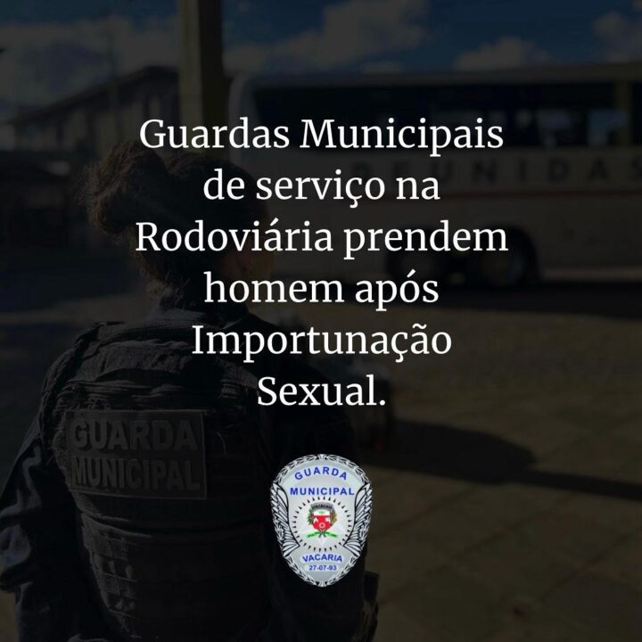 A Guarda Municipal de Vacaria prendeu em flagrante um homem acusado de importunação sexual contra duas adolescentes na Estação Rodoviária da cidade, na tarde de sábado, 4 de outubro.