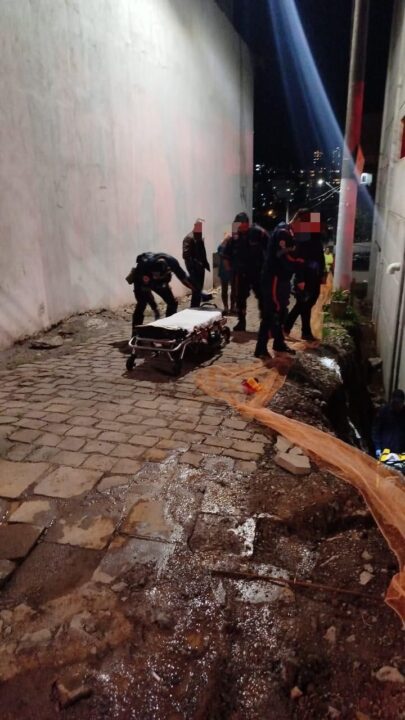 Homem cai em buraco de quatro metros em construção e é resgatado pelos Bombeiros em Bento Gonçalves