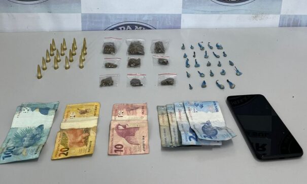 Ao abordar o indivíduo, os policiais encontraram 17 porções de cocaína (13,4g), 9 porções de maconha (35,4g) e 24 pedras de crack (3,9g), além de um celular e R$ 138,00 em espécie, valor possivelmente relacionado à venda dos entorpecentes. Todo o material foi apreendido e encaminhado junto com o suspeito à delegacia.