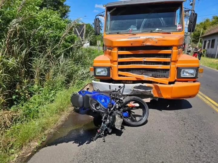 Jovem de 23 anos fica gravemente ferida em colisão entre moto e caminhão na BR-470, em Montenegro