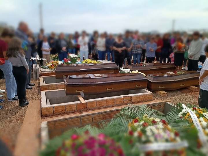 O velório iniciou às 8h no Centro Comunitário do Bairro Pavão e reuniu uma multidão. Por volta das 11h, o cortejo seguiu acompanhado por dezenas de veículos, entre eles um ônibus da Empresa Avipan e uma van com familiares e amigos. Dois irmãos foram sepultados juntos em uma sepultura dupla, enquanto o casal foi enterrado lado a lado em outra.