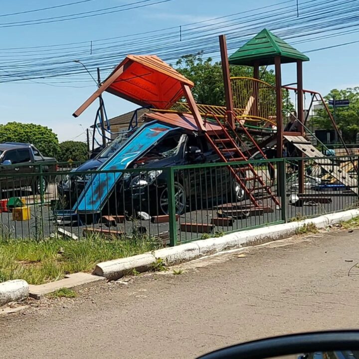 Um motorista embriagado foi preso em flagrante na tarde de quinta-feira, 23 de outubro, após invadir e destruir a pracinha localizada na Avenida Padre Antônio Vieira, no bairro São José, em Passo Fundo. O homem conduzia um Hyundai i30 quando perdeu o controle do veículo e atingiu a estrutura do local.