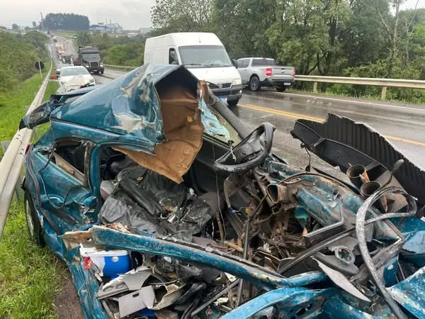 Motorista sobrevive após carro partir ao meio em grave acidente na BR-285, em Passo Fundo
