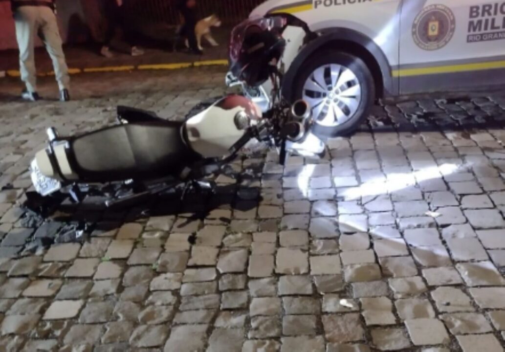 Uma perseguição policial terminou em colisão entre uma motocicleta e uma viatura da Brigada Militar na noite de quarta-feira, 29 de outubro, em Carlos Barbosa. O incidente ocorreu após o condutor de uma Honda CG 150, com placa de Farroupilha, não obedecer à ordem de parada durante uma abordagem.