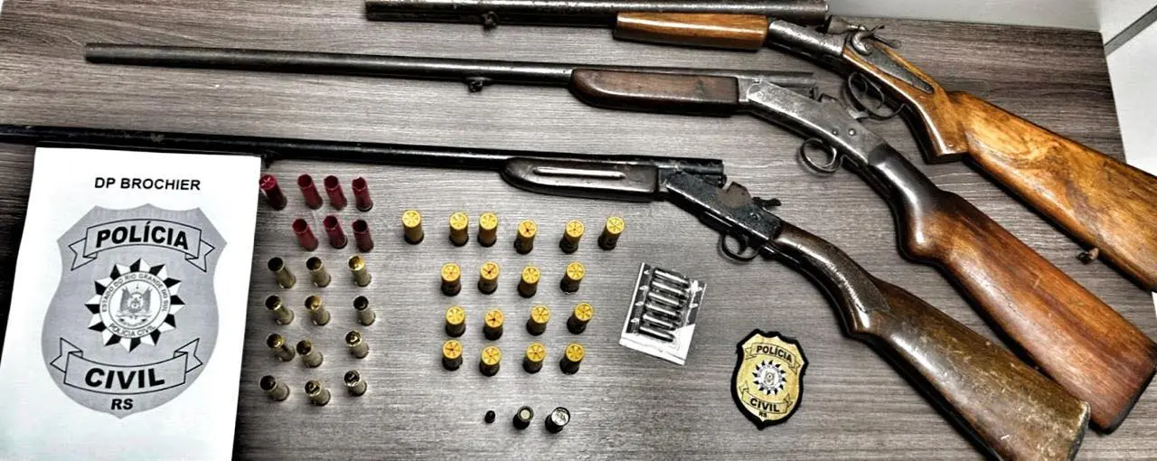 Durante as diligências, os policiais civis apreenderam três espingardas de calibres .36, .24 e .32, além de diversas munições. O idoso, proprietário das armas, foi preso em flagrante, e a autoridade policial arbitrou fiança no valor de um salário mínimo. Após o pagamento, o homem responderá ao processo em liberdade.