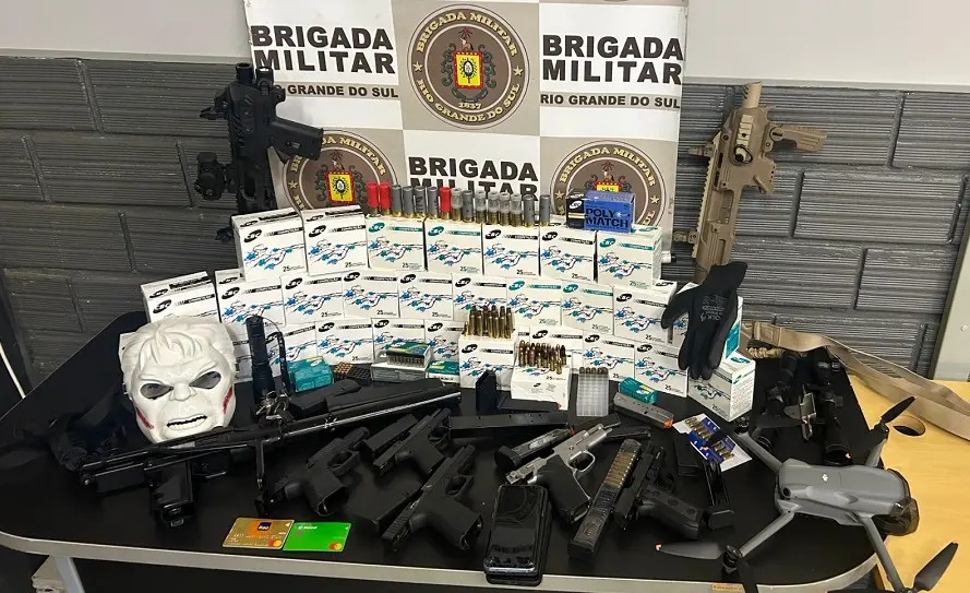 Na vistoria, foram encontradas cápsulas deflagradas no interior do veículo e, na residência, foram localizadas diversas armas e munições. Entre o material apreendido destacam-se duas armas com kit Roni, uma submetralhadora Uzi com silenciador, pistolas, lunetas, um drone e grande quantidade de munições de diversos calibres. Os homens foram presos e conduzidos à Delegacia de Polícia de Pronto Atendimento (DPPA) de Lajeado; um deles possui antecedentes por violência psicológica e ameaça. A Polícia Civil dará sequência à investigação.