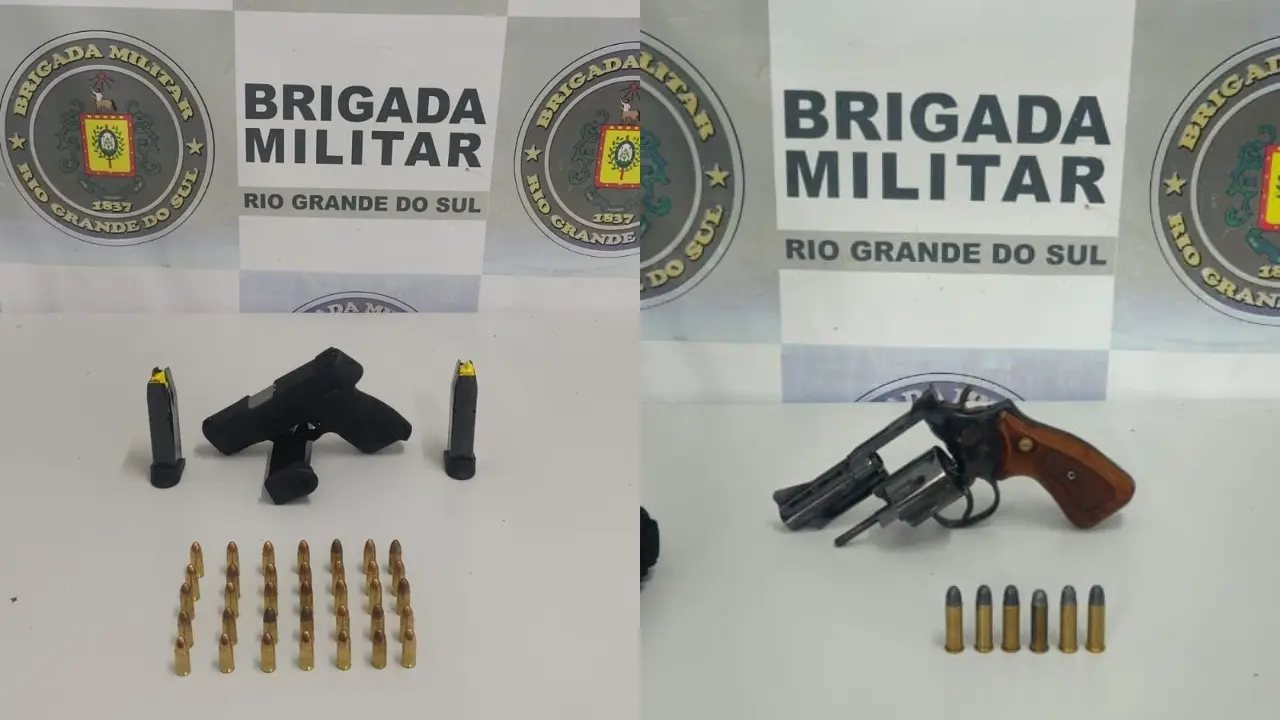 Na vistoria, foram encontradas cápsulas deflagradas no interior do veículo e, na residência, foram localizadas diversas armas e munições. Entre o material apreendido destacam-se duas armas com kit Roni, uma submetralhadora Uzi com silenciador, pistolas, lunetas, um drone e grande quantidade de munições de diversos calibres. Os homens foram presos e conduzidos à Delegacia de Polícia de Pronto Atendimento (DPPA) de Lajeado; um deles possui antecedentes por violência psicológica e ameaça. A Polícia Civil dará sequência à investigação.