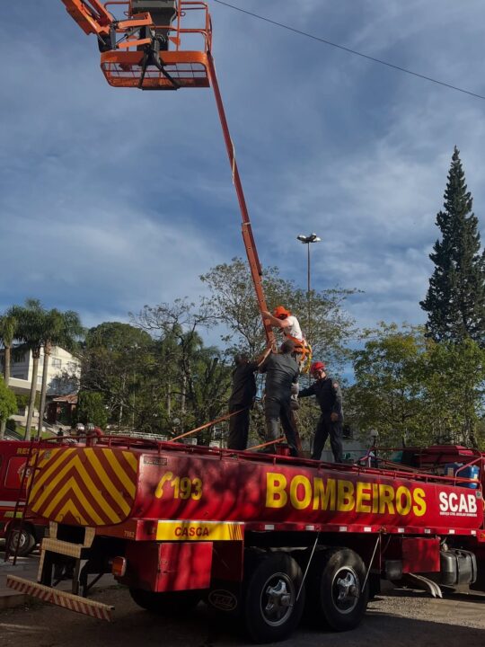 As guarnições do SCAB realizaram o acesso ao ponto elevado por meio de uma escada escalonada e, utilizando técnicas especializadas de resgate, efetuaram a descida assistida e segura dos dois trabalhadores, que saíram ilesos do incidente.