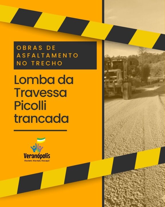 A Secretaria de Desenvolvimento Rural de Veranópolis informa que a “Lomba” da Travessa Picolli permanecerá interditada até segunda-feira, 3 de novembro, devido à execução da base asfáltica no local.