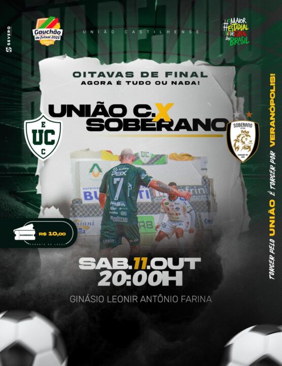 O União Castilhense Futsal entra em quadra neste sábado, às 20h, no Ginásio Poliesportivo de Veranópolis, para um confronto decisivo pelas oitavas de final do Gauchão de Futsal Série B, contra a forte equipe do Soberano.
