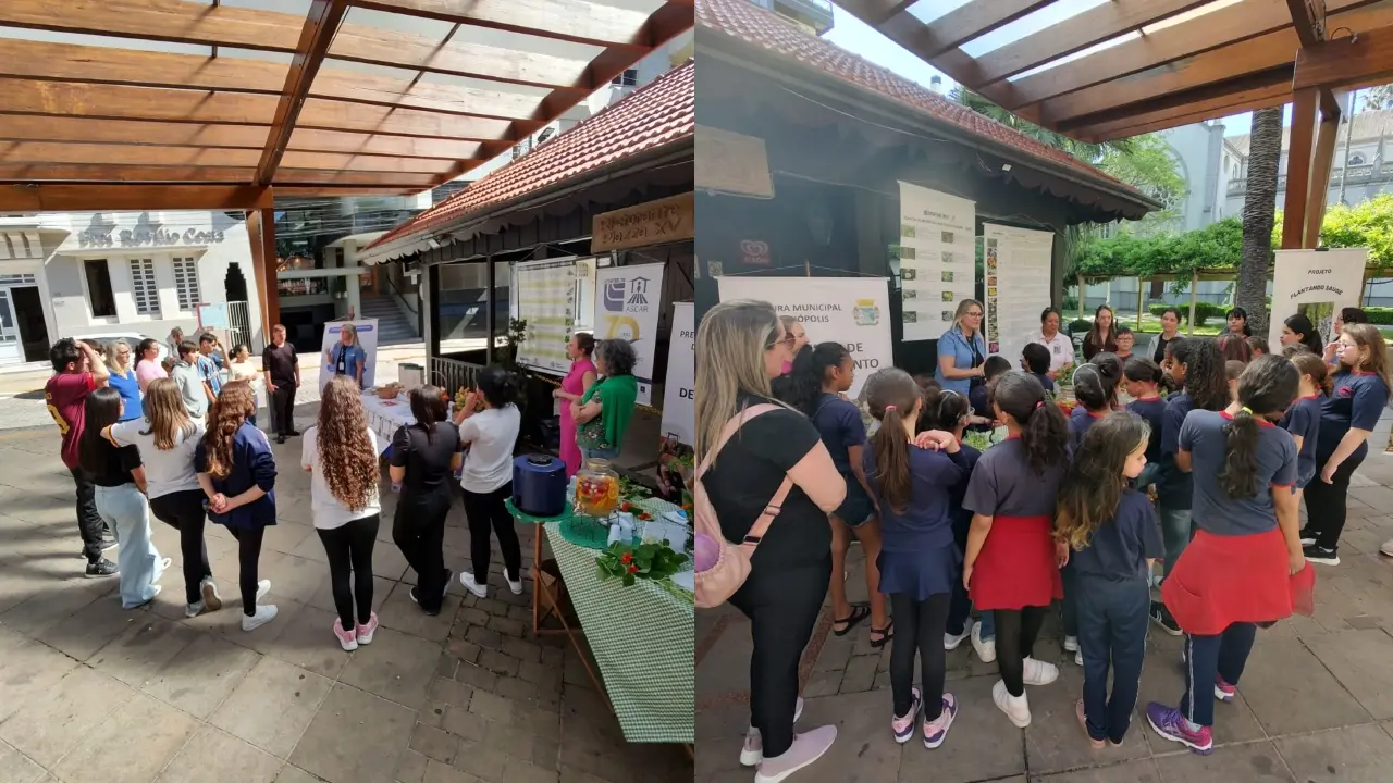 A Semana da Alimentação foi celebrada em Veranópolis com uma série de atividades promovidas pela Emater/RS-Ascar, em parceria com a Secretaria Municipal da Educação, nesta quarta-feira, 15 de outubro, na Praça XV de Novembro. A iniciativa integrou o tema da 23ª Semana da Alimentação do Rio Grande do Sul, que neste ano aborda os “Desafios e Caminhos Sustentáveis por uma Comida de Verdade”, em alusão ao Dia Mundial da Alimentação.