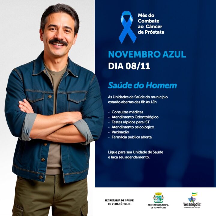 A Prefeitura de Veranópolis, por meio da Secretaria de Saúde, realiza no sábado, dia 8 de novembro, uma ação especial em alusão ao Novembro Azul, campanha dedicada à saúde do homem e à prevenção de doenças.