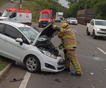 Acidente entre dois veículos mobiliza Corpo de Bombeiros na BR-470 em Bento Gonçalves