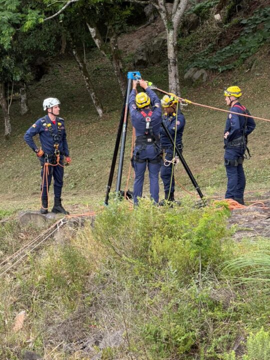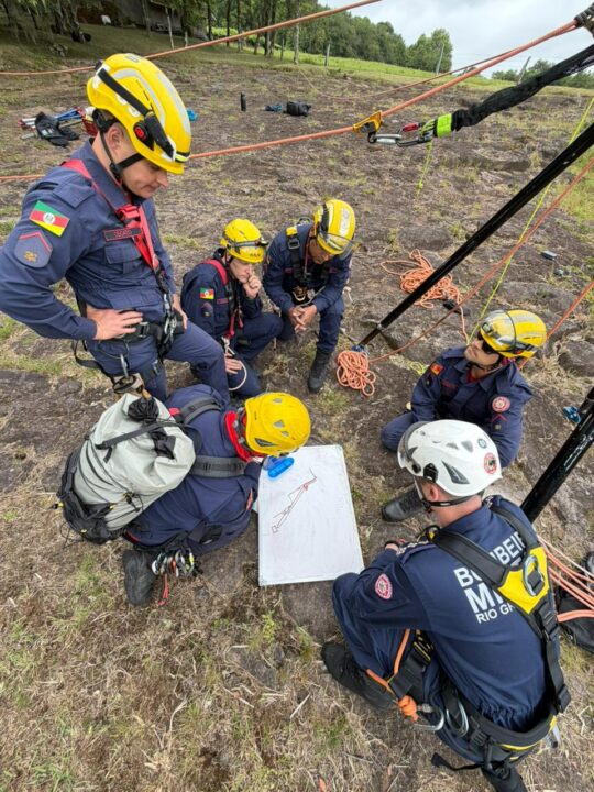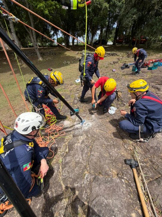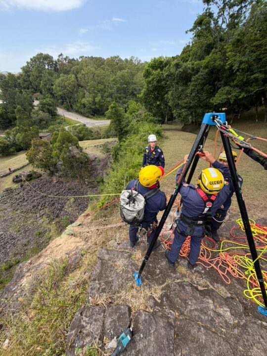 Durante a atividade, os bombeiros executaram diversas técnicas especializadas, incluindo ancoragem em rocha, instalação de tripé, tirolesa, travessia com maca e sistema STEF, além da aplicação de novas tecnologias, como o uso do descensor elétrico.
