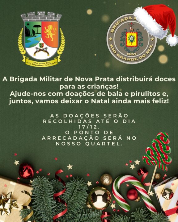 A 3ª Companhia Independente da Brigada Militar de Nova Prata está promovendo uma campanha de arrecadação de balas e pirulitos para tornar o Natal das crianças da comunidade ainda mais especial. A iniciativa convida a população a participar de um gesto simples, mas capaz de transformar sorrisos.
