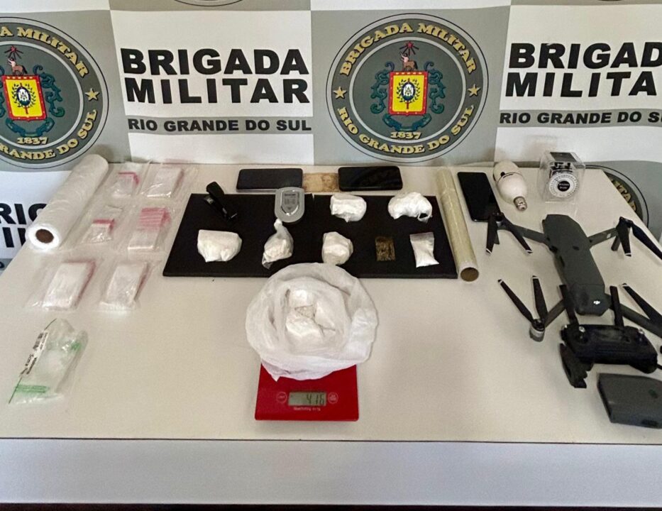 Na segunda ação, no bairro Santo André, os policiais efetuaram a prisão de um homem de 21 anos, com quem foram encontradas uma porção de cocaína (418,5 g), uma porção de maconha (21,2 g), uma balança de precisão e um drone DJI Mavic.