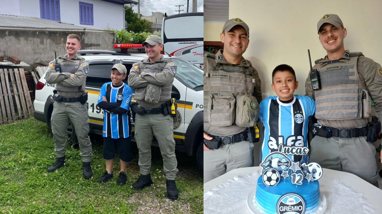 Lucas sonha em ser policial quando crescer, e a presença dos soldados em sua casa foi motivo de grande emoção para toda a família. Em mensagem enviada junto com fotos do momento especial, os familiares expressaram gratidão: